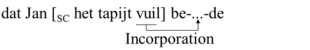 As the discussion above shows, it seems possible to explain a large variety of be-, ver-, and ont-verbs by syntactic incorporation. This proposal is motivated not only by the fact that it can account for the exceptional behavior of these prefixes with respect to the righthand head rule, but also by a larger set of empirical data that will be discussed in the following subsections.