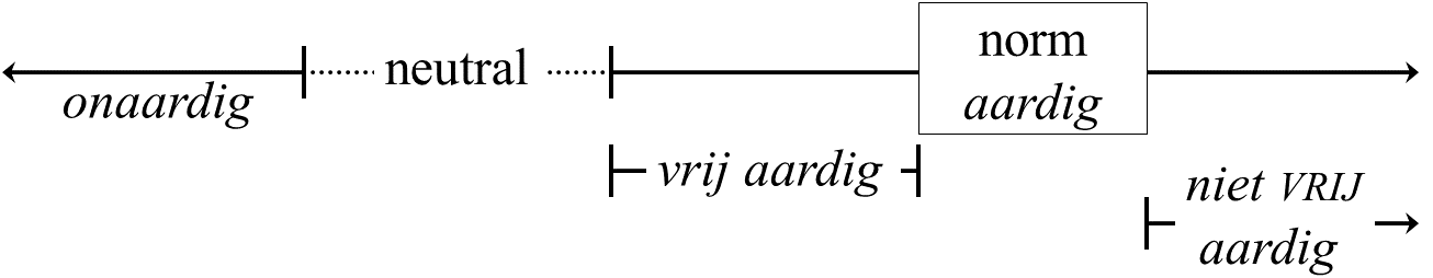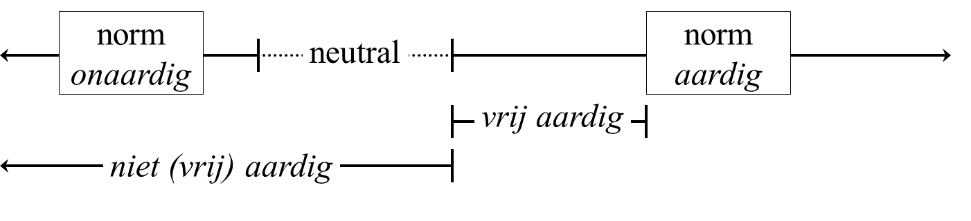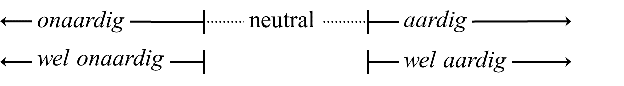 The modifier weinig can only be used with scalar adjectives that have an absolute antonym; example (315a) is unacceptable, since the antonym of aardig is also gradable; cf. erg onaardigvery unkind. The modifiers in (313b&c) can be used in these contexts.