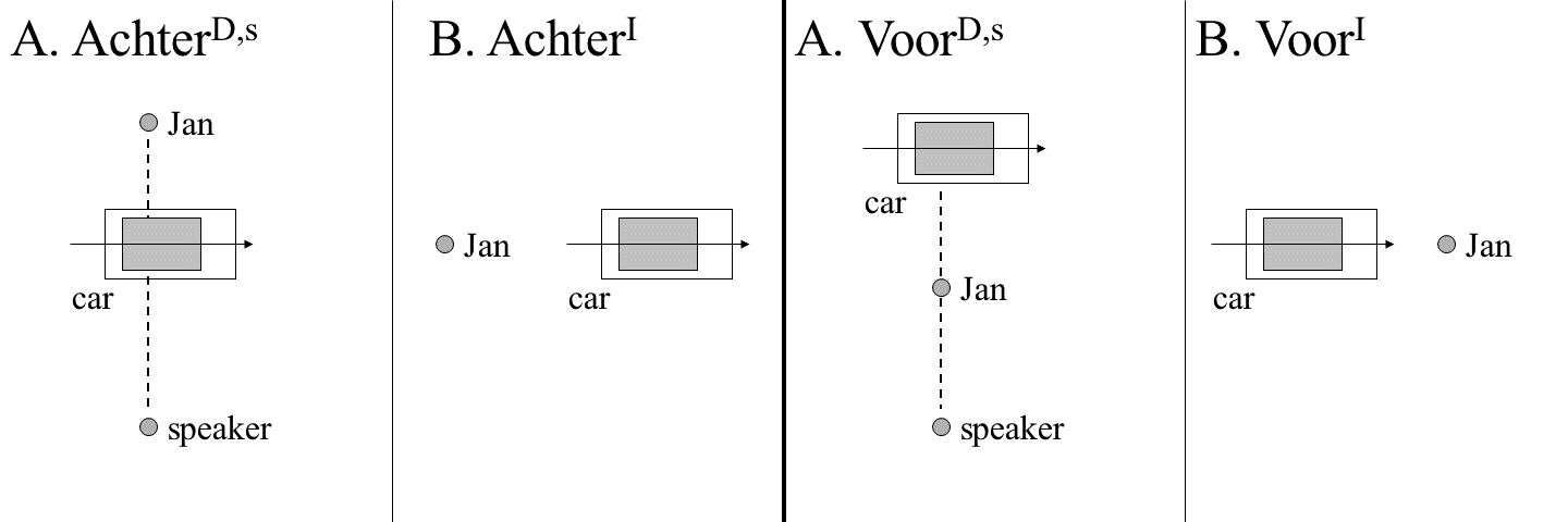 | Deictic | achter ‘behind’ | + | + | — | + | — | — | + | — |