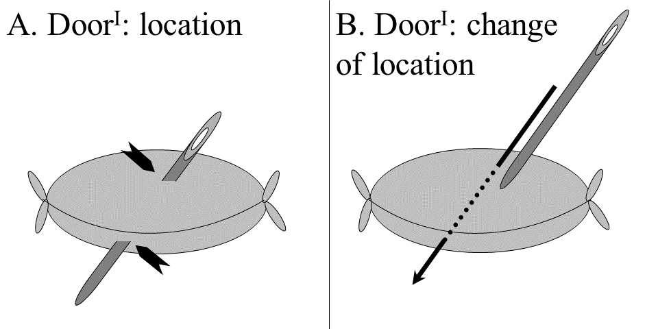 | door ‘through’ | — | — | + | + | + | + | — | + | |